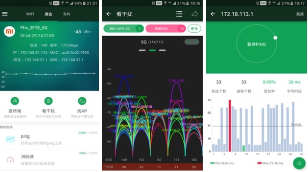 软件的功能上能够帮助用户快速的建立连接,让用户轻松的上网。在软件页面上能看到实时的数据传输速度。如果觉得家里的网速慢下来了还可以进行测速和连接wifi的ip管理。