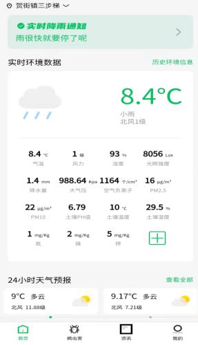 主要是为了农业以及种植业而推出的一些数据分析功能,对当地的天气、风力、气温、光照等进行了采集和分析,从而帮助我们判断播种、施肥以及收获的时间,更是可以根据栽培种植种类来预约提醒功能。