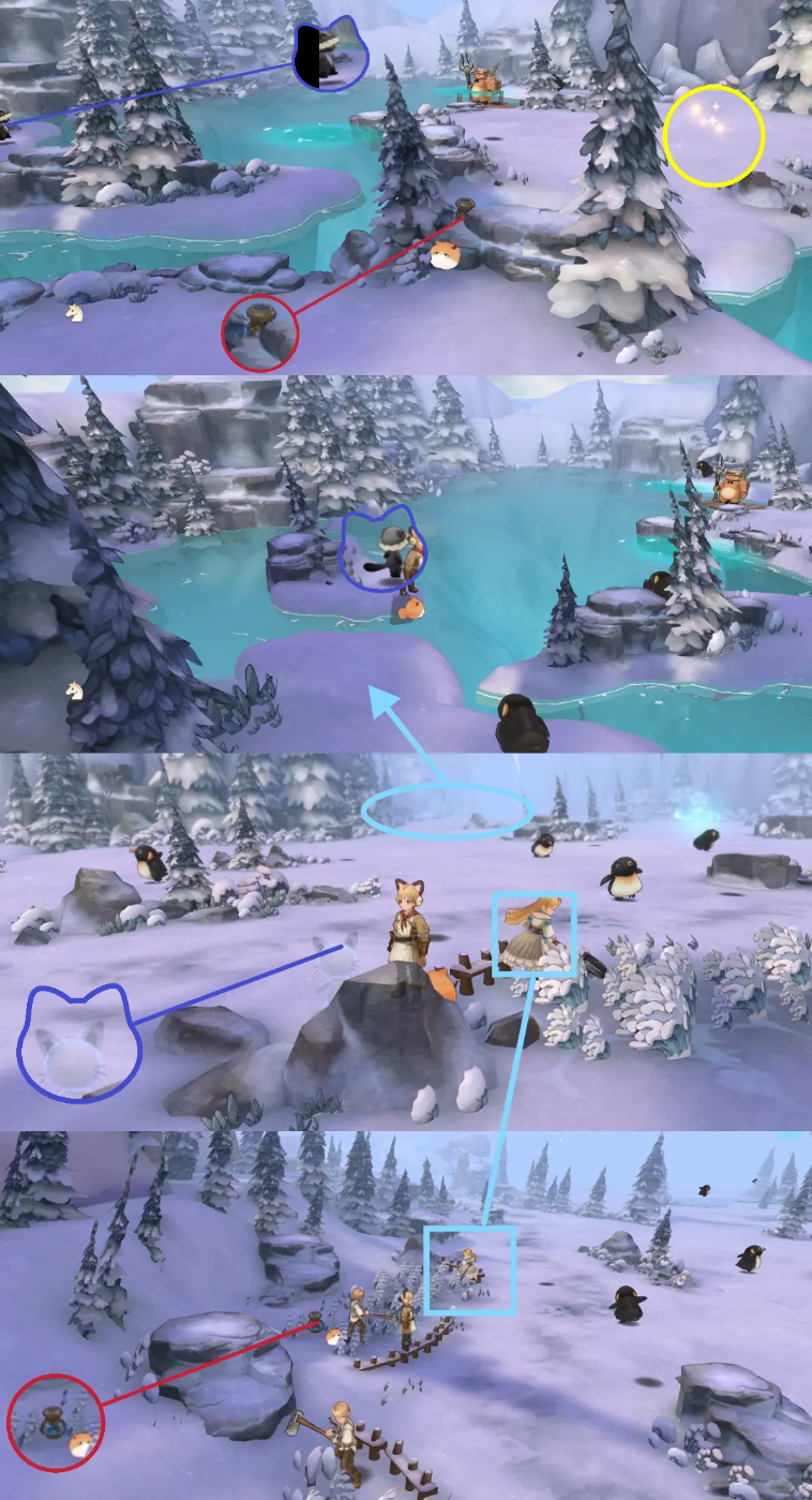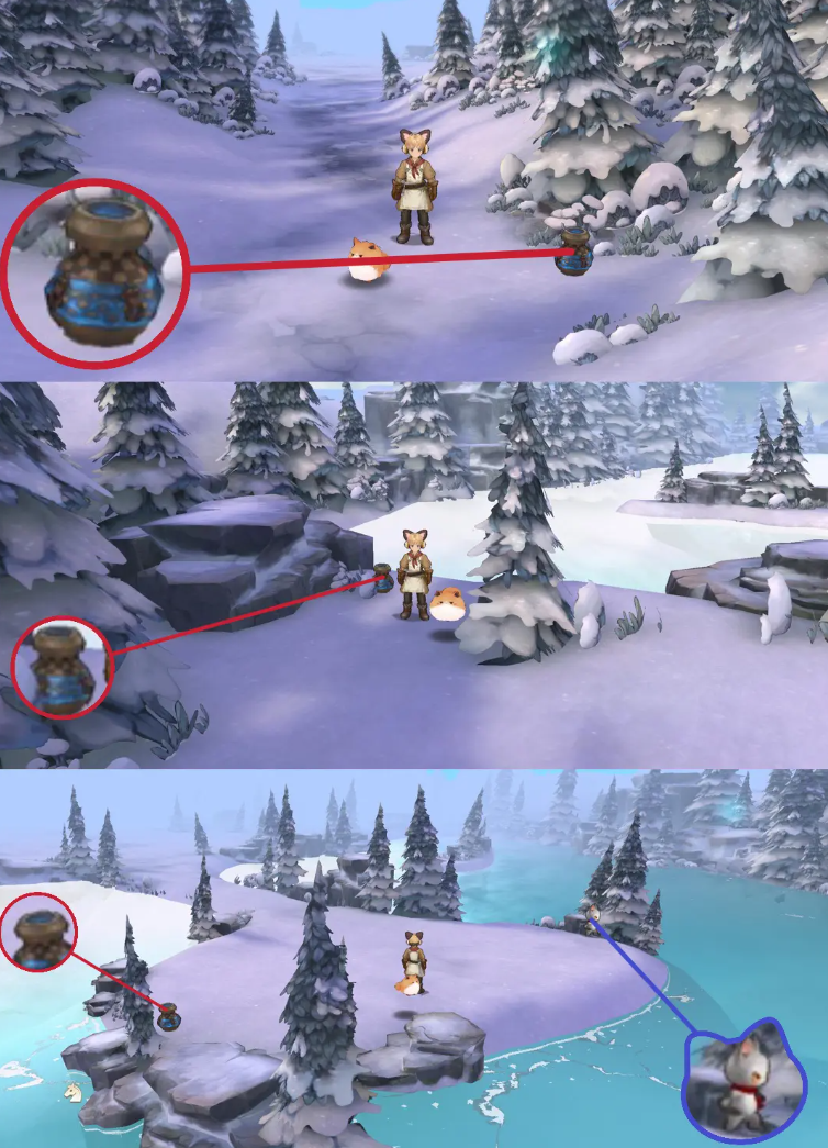 猫咪点:冬泉岭共有10个猫咪点,每个猫咪点都有一只猫咪在等待你的互动。你可以通过点击猫咪或者使用照相机来与它们交流,它们会给你一些提示或者奖励。罐子:冬泉岭共有8个罐子,每个罐子都藏在一些隐蔽的地方,你需要仔细观察周围的环境,才能发现它们。罐子里面可能有一些有用的物品或者金币,可以点击罐子互动来打开它们。