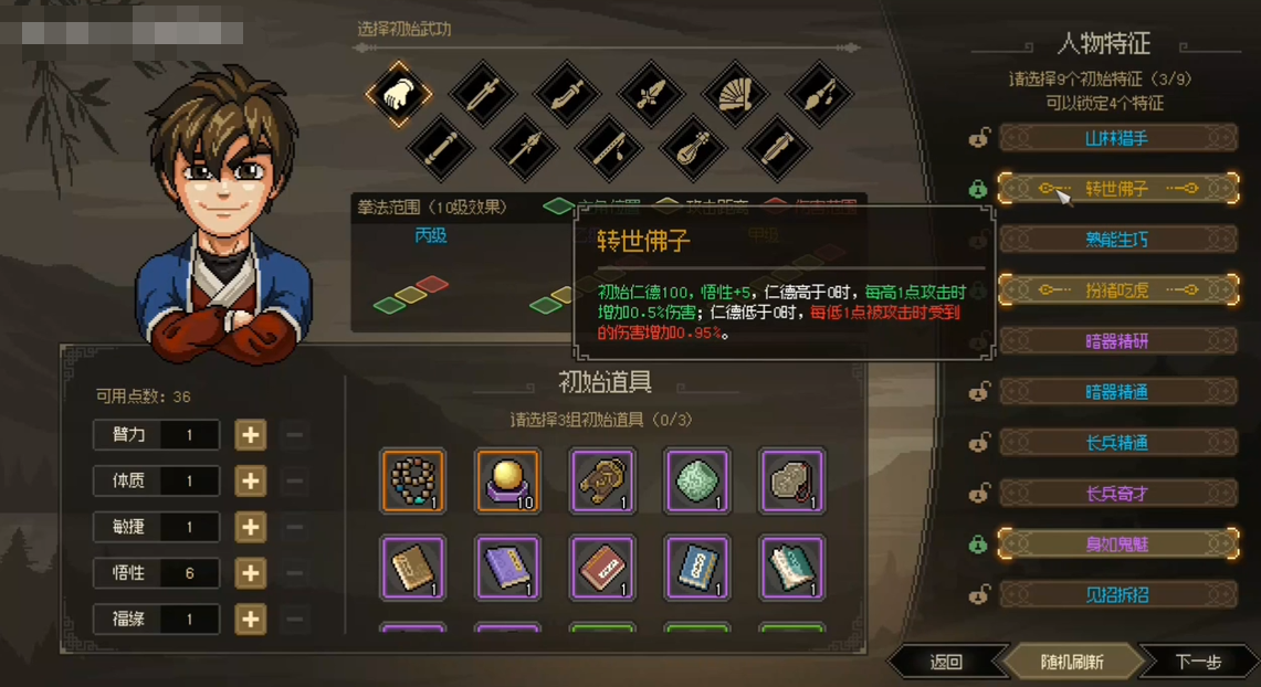 大侠立志传是一个像素风的武功元素rpg新作,玩家可以在江湖中自由探索,学习各种武功,结交各路英雄,成就一代大侠。那么大侠立志传转世佛子有什么用呢?游戏中有很多特性可以选择,其中转世佛子是一个非常强大的特性,可以大幅提升玩家的战斗力和悟性。本文将为你解读转世佛子的获取方法和使用技巧。