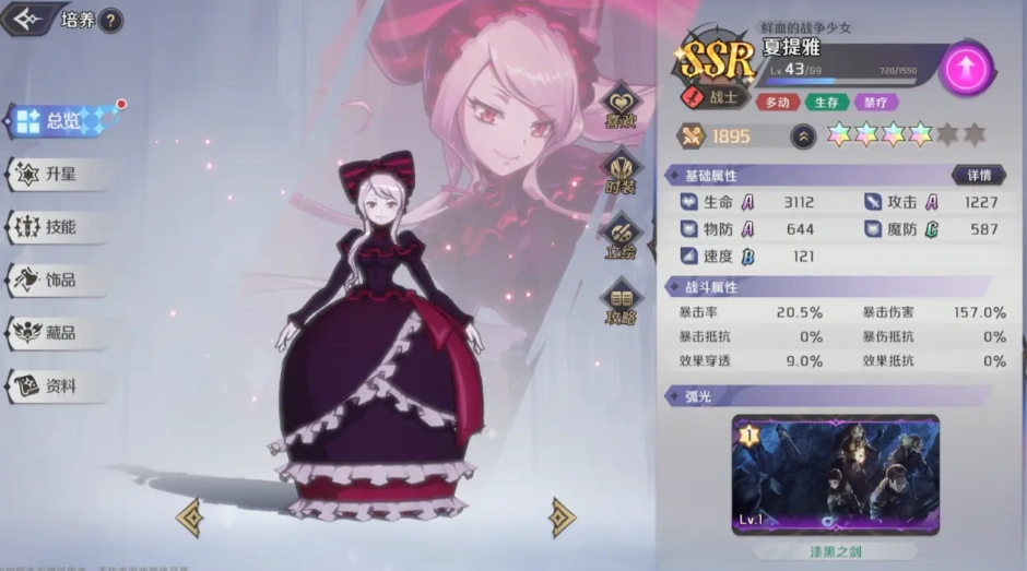 ③夏提雅:这是个生存能力很强的角色,从属性面板来看,她无论是攻击,防御还是生命都达到了较为不错的A级水准,虽然速度与模仿普普通通,但其技能却提供了很强的生存能力,所以完全不用担心她的防守端表现。