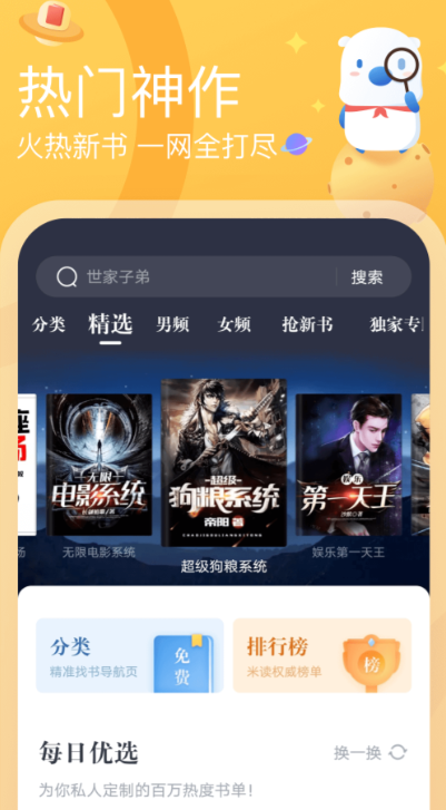 想要完全免费阅读体验又好,大家不妨试试《米读极速版》。平台中有很多类型的排行榜,还有特色的男频、女频排行榜。平台中收集的小说很全,例如《电影系统》、《超级狗粮系统》等,都是火爆的小说。