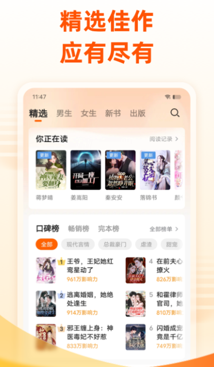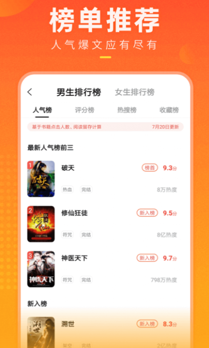大家想要各种主题的书单可以在此软件中找到,平台中有很多网友真实测评小说,将喜欢的小说分类成书单分享给大家。而且平台内有很多类型的排行帮,比如热门小说排行榜,其中有知名小说《校花的贴身高手》,还有连载榜、月排行榜等,大家一致好评。