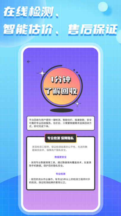 此平台是专业进行二手手机买卖的,大家可以买到质量好价格也便宜的收手机,不用为频繁换手机而感到又压力。对于不用的手机,平台可以进行回收,平台会对手机的性能、型号、外观等各方面估价,售后也又保障。