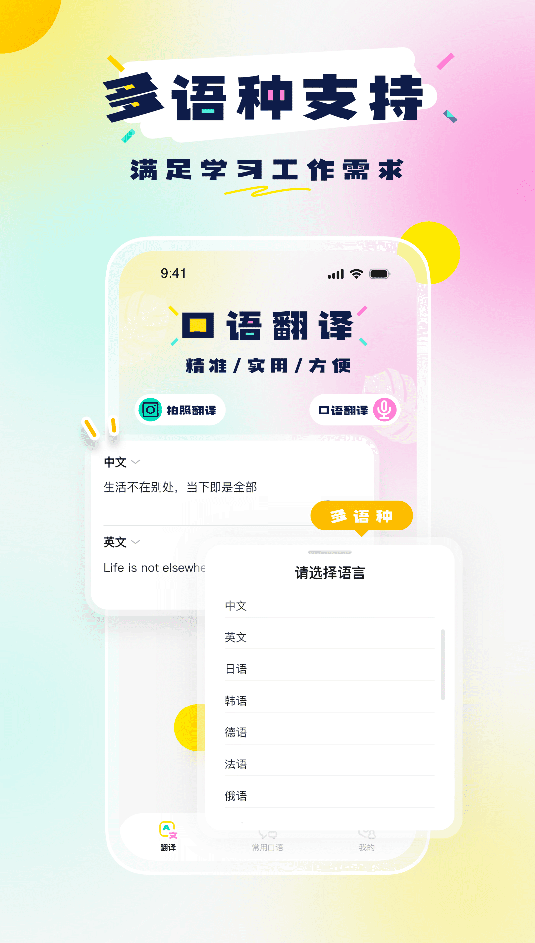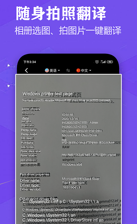 让大家学习和工作加便捷的软件,有的时候公司可能接到的文件是其他语言的,如果你一个词一个词的去翻译就会浪费很多的时间与精力,使用这个APP进行拍照翻译立刻就可以得到翻译内容。