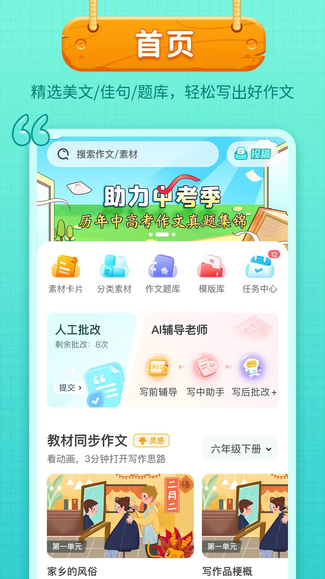 在这款软件中有非常多的作文主题可以使用,同时在软件中小伙伴们还可以通过app中自带的作文编写功能来帮助自己学习写作技巧。