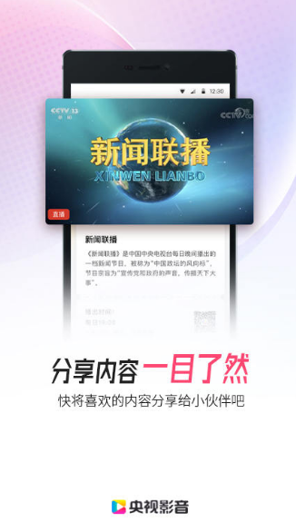把央视各个频道装进手机里,只要一个软件就能欣赏精彩的官方内容,可以看直播也可以搜回放看,不用担心错过想看的剧目。