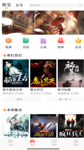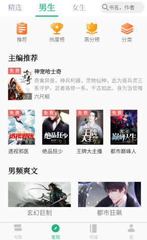分为了男生和女生两个不同的频道,提供的服务都差不多,只不过在默认推荐的内容方面有一些细微差别。可以直接选择免费专区以及在分类中找到想看的作品。