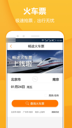 主要是面向城际出行的一些需求,可以自由选择购买火车高铁动车或者是汽车票,班次还是比较多的,还能够自由选座,服务相当不错。