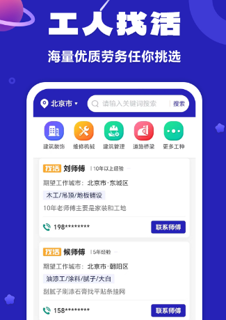 主要针对从事建筑行业人群找工作的一款软件,通过软件用户可以知道附近哪个工地在招工、有哪些工作可以选择,薪资跟工期大概多少,高效对接让工友们更快找到满意的工作。