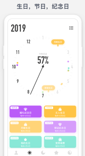 颇为专业的时间提醒工具,可以选择自动标注上当年的节假日,也可以自己在其中录入纪念日或者是生日信息。