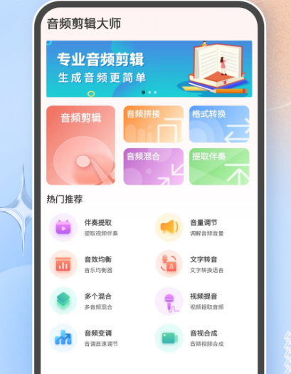用该软件来进行音频剪辑,或合并以及转换音频格式等,轻松能完成操作,也可设置自己喜爱的音频铃声,如果想要为视频录音,也可选择这款软件,各种音频随意录取,很多从事短视频的博主用这款软件来录音效果特别好,还可制定个性化的铃声,如今新添加了很多的功能,受到了广大用户一致的好评。
