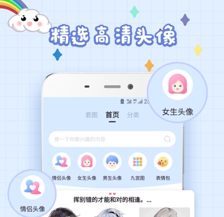 软件里面为大家带来了许多的精选头像,同时还有个性化的定制功能,涉及的头像类型丰富,大家能自由的选择,不论是男生还是动漫亦或者是卡通等,都可一键了解到。