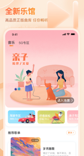 这里的曲库也是非常齐全的,而且带有海量的高品质歌曲供大家任意聆听,软件创新性地推出场景模式,可以根据不同的场合选择整理出来的歌单,让身心得到放松。