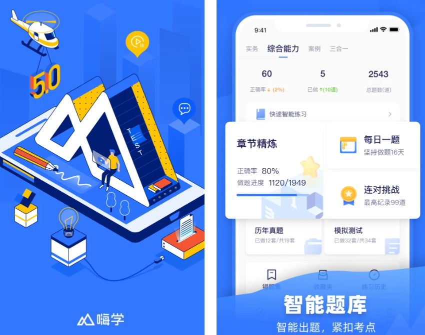 这款软件比较适合考执业证书的人使用,软件上有各种建筑建造师、法考、注册会计师等考试课程,智能题库包含真题试卷,每日有章节精选与答题挑战。