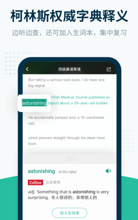 通过给英语材料进行配音并且使用智能纠错系统帮助我们快速发现发音错误进行及时纠正,软件更是能够让大家在训练的过程中掌握一些新闻资讯和对英语语境的了解,从而反哺到考试练习中去。