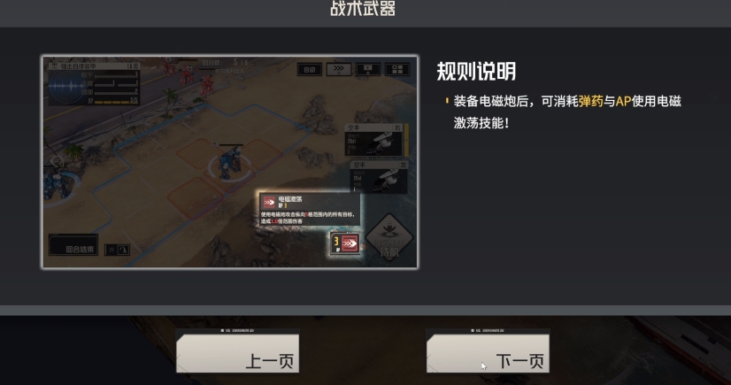 定点打击的时候也会拥有超远的射程,而且可以对武器射程范围之内任意的一个敌人带来伤害的效果,这是基于大家大家装备的是火箭的情况下可以做出的操作,玩家可以消耗弹药带来轰炸伤害,如果装备的是电磁炮,使用的技能则是电磁激荡的技能,电磁激荡打出来的范围其实是1*5的范围。
