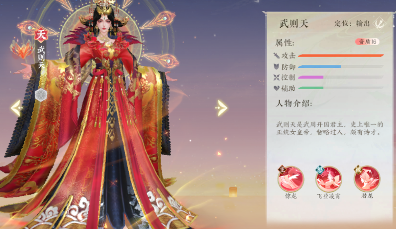 而武则天这个门客就更加的特殊了,是一个【天】级别的门客,获取的难度虽然不高,但是后续升星的话,比较困难,大家在初期可以通过许愿的方式,来获得一张本体卡,如果初期没有李白的话,可以选择使用狄仁杰作为搭配,来激活武则天的羁绊效果!武则天的伤害可以对前排造成高额的百分比伤害,但是大家换个思路,把武则天放在后排的话,就会优先对敌人后排进行攻击,而且这个初始伤害真的是非常的高,目前是游戏中最高的一个了,而大招伤害同惊龙一样,造成两段同百分比的伤害,而且是群体伤害效果!