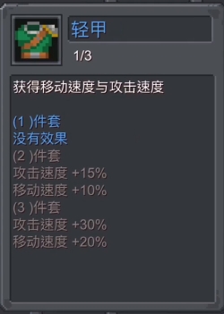 而轻甲则能够为刺客提供攻速与移速,这也是刺客二周目能走攻速流的保障之一,它提供的高额攻速与刺客的高敏捷加点思路不谋而合,实战中能在打出恐怖爆发的同时,兼顾较高的输出频率,而且百分比的移速加成配合本就机动性不俗的刺客也是如虎添翼。