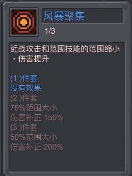 风暴聚集的话它则可以提升近战攻击和范围技能的伤害,但代价是缩小攻击范围,虽然进一步压制了刺客的射程,但因为刺客本就是突进攻击,所以影响并不算大,相反,因为它提供的高额附加伤害,所以在实战中刺客的整体清怪效率反而变得更高了。