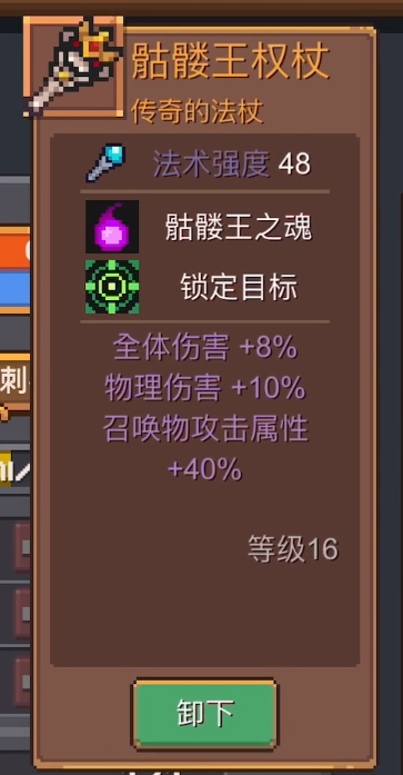 骷髅王权杖:这个是给召唤系法师用的武器,此前更新出的那个通灵师就比较适合,它的初始法强虽然比较低,但骷髅王之魂可以额外召唤骷髅小怪,再配合一手锁定目标的技能效果,无论是你召唤物大军的强度,还是你自己的技能输出,都有了稳固的保障。