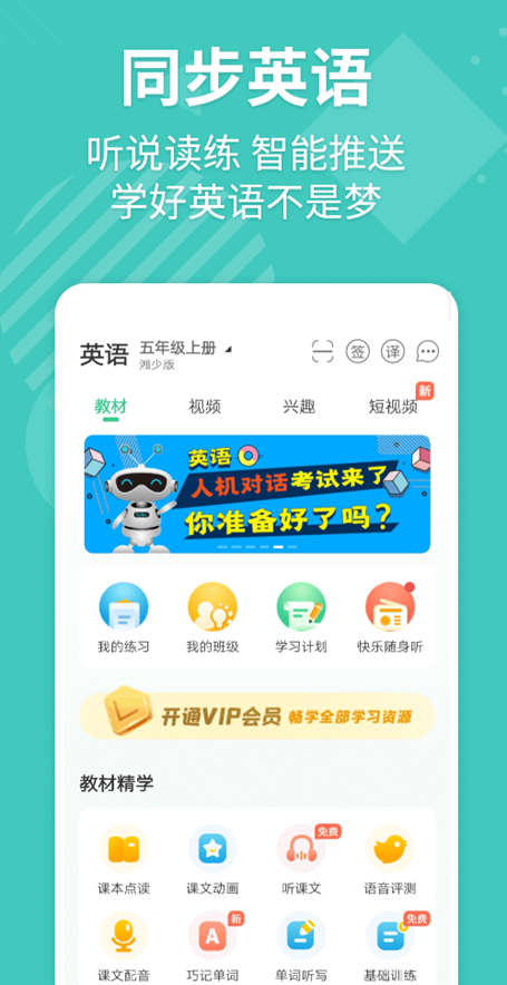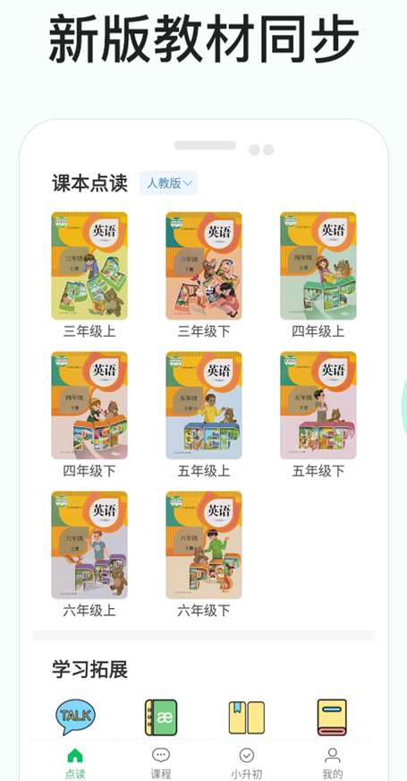 软件将目前比较新的几个教材版本进行了同步,我们可以直接在不同版本和年级中进行选择,还提供了专门的点读音频材料,使用起来也是比较方便的。