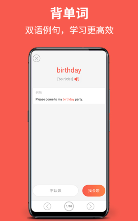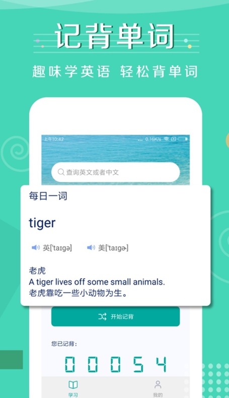 能够让我们享受到趣味性的背单词软件,通过强大的记背系统每天累计扩展词汇量,而且还会提供单词的读法以及对应例句,从而快速掌握使用技巧。