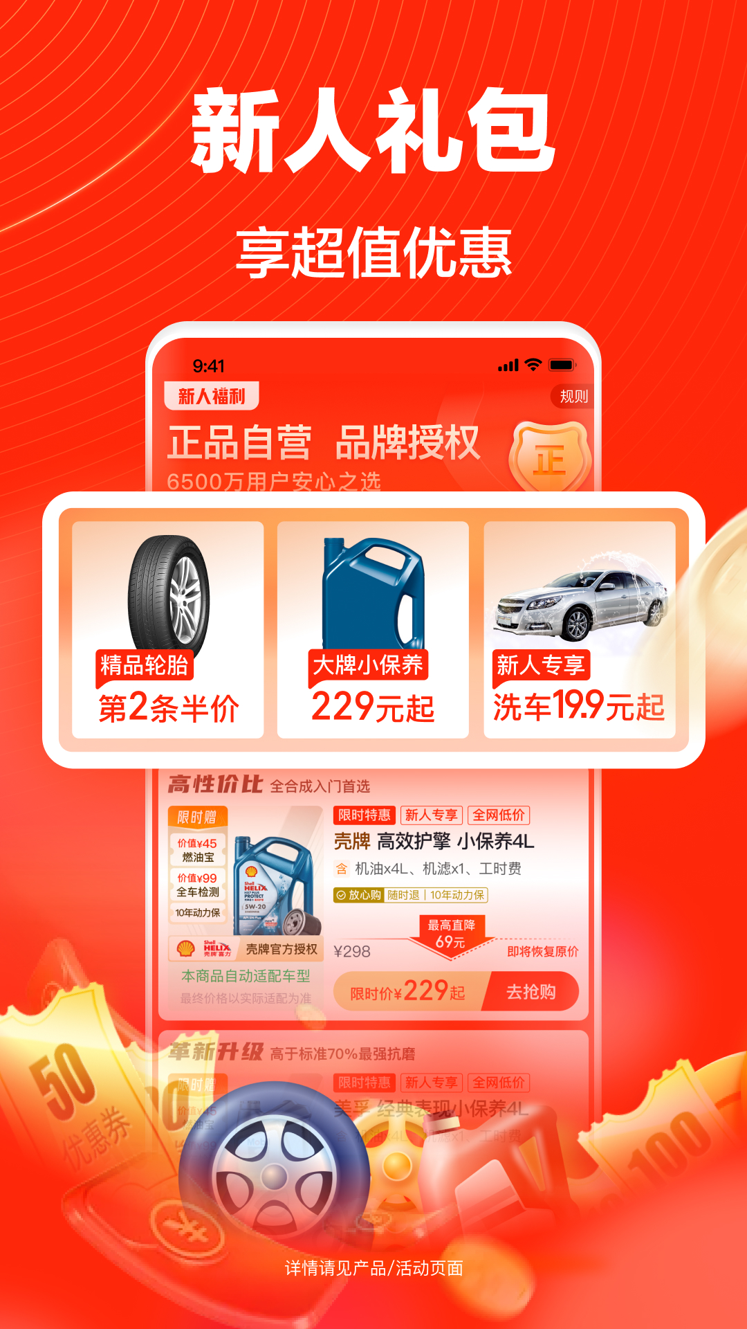 线上汽车养护一体平台,它设定了线上预约和线下服务的模式,同超多4S店达成合作,用户使用实惠价格购买轮胎、汽油、零配件等,还能折扣保养和美容。
