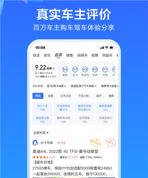 一站式汽车门户平台,该app发布了各大品牌汽车信息,覆盖了新车和二手车,大家线上挑选汽车和维修保养、测评车款,还能享受加油等促销优惠。