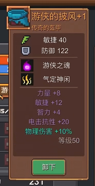 游侠的披风:它作为一套盔甲类装备,其外形确实披风的样子,虽然本身外观看上去比较简陋,但还是能让人一眼联想到上一部作品中的游侠职业,所以可谓是情怀分满满。