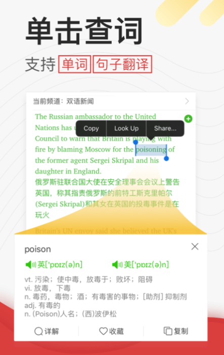 英语听力对于很多同学来说是一件很难的事,想要提升听力一是要掌握单词,二是要掌握口语。大家在平台中可以每天听一些英语频道,点读这些单词,具体的发音以及意思都可以掌握。