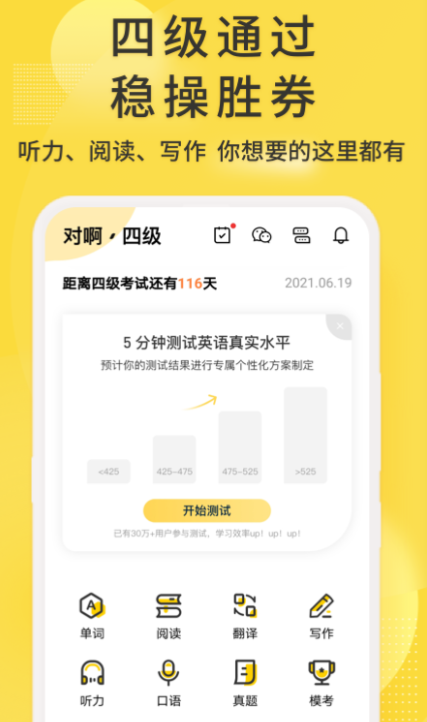 很多英语比较好的同学们可以尝试背英语四级的单词,大家轻松度过=四级考试。平台中不仅可以对课本点读,更有很多题目题型等着大家练习。大家无论是想提升哪一方面的,是听力还是阅读理解,平台中都有提醒供大家练习。