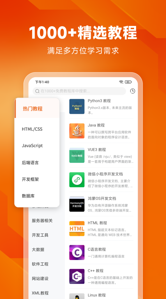 一款能帮助程序员们随时随地写代码的实用软件,同时也是各位学习者们能获取到学习资料,看到相关网课的学习软件,也能做题搜题查看精讲。