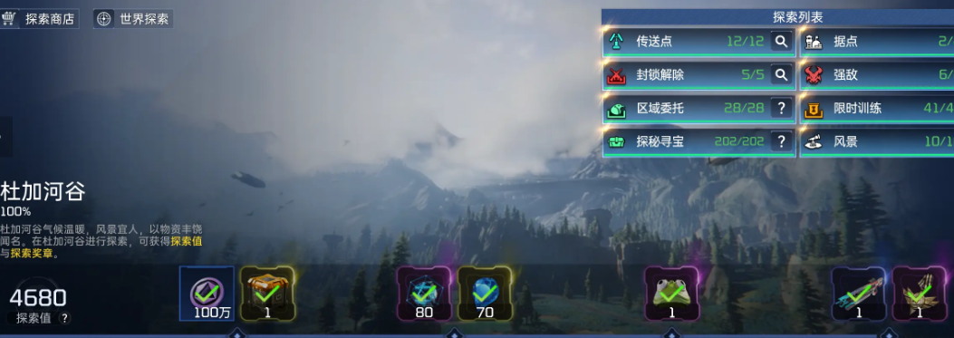 新手玩家们初期如果想要获得大量的装备的,那么探索的玩法肯定是要重视起来的,大家在地图中采集的资源获得的宝箱,都是可以在自己的家园中进行制作装备的,最好是提升好自己的装备后,在去游戏中进行打本,刚进入游戏的时候,新手玩家都会接取到一个【神秘宝藏】任务,这个任务主要是需要玩家们去完成限时训练任务以及一些地图的委托任务!在右上角大家可以看到探索列表,朋友们可以根据需求来进行查看就可以了,有强敌的话,建议组队进行完成,获得探索值后,还可以领取精美的礼品!