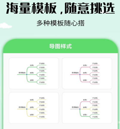 有较为丰富的导图模式,可结合个人实际需求以及个人灵感做出合适的选择,复杂的想法都可整理,在一张图上清晰可见的呈现出来,可快速帮你制作笔记,整理思路。
