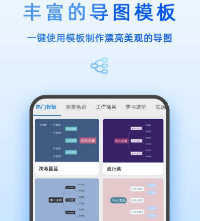 利用该软件轻松整理头脑风暴,梳理各种复杂的信息,提高学习工作效率,其中有多种模板,如果自己没有灵感的话,可直接套用。