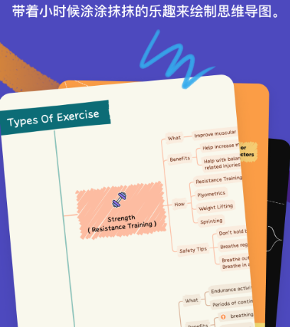 思维导图笔记软件,功能强大操作简单,在设计时非常简洁,这是一款办公学习效率软件,可轻松搭建知识系统,另外还有数据同步,不是有时间地点直接登录账号即可观看思维导图。
