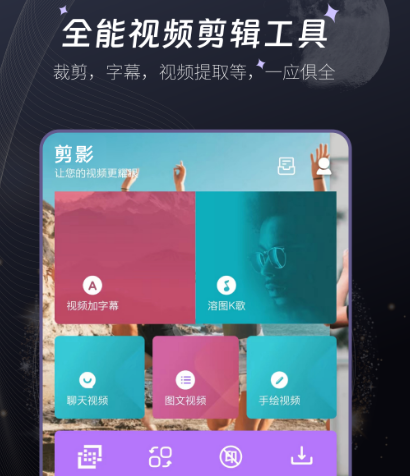 在这一个剪辑软件里,不仅拥有着很多爆款的模板以及视频剪辑工具,还能够在节日的时候定制祝福送给亲朋好友,还配备视频抠像等功能,轻松出来特效大片。