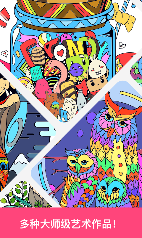 在功能方面不同于传统彩色填色软件,拥有更多时尚现代感设定和元素。可以随意选择自己喜欢的画作,通过点击涂色方式就能完成创作。还有海量独家创作原稿以及大师级风格艺术作品,作品可以随意放大缩小,不会放过死角。制作好的作品也支持本地保存。