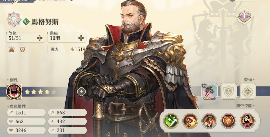 这个角色个性技能其实在使用的时候一到五星的效果都是差不多的,只不过是有数据上面的变化,在攻击的时候只要是在他周围范围四个格子之内的敌人,在攻击的属性上面都会有15%的降低效果,并且加在物理攻击上面的数值也是会有一定提升的,在初始技能上面是可以带来150%的伤害增益,当然如果使用这个技能,正好敌人身上有一个受伤属性的话,大家可以直接将孤立的效果实现在敌人身上,而且大家还可以利用这个技能来将敌人击败的话,那么马格努斯他会获得两点的能量恢复效果。