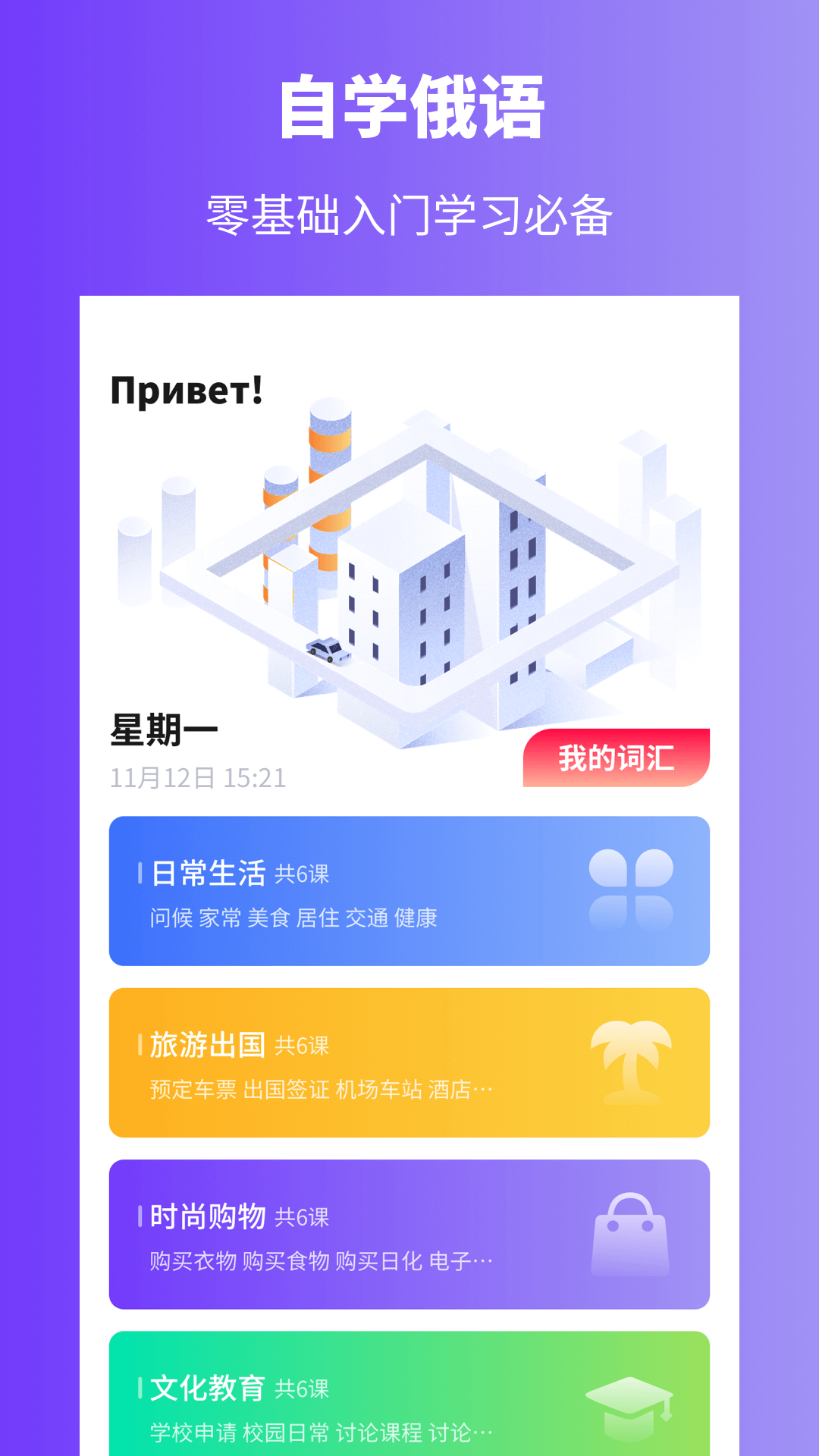结合这款软件的内容展开学习,可以让用户们体验由浅入深式的的学习方式,能够大大提高大家对于俄语这一语言的掌握能力。各位用户们能够在这款软件上,从学习俄语单词入手来培养对于俄语语言的掌握能力,如果后期学习效果比较好的话,能够学习不同的语句内容,实现基础的人际交流。