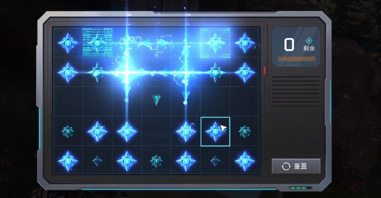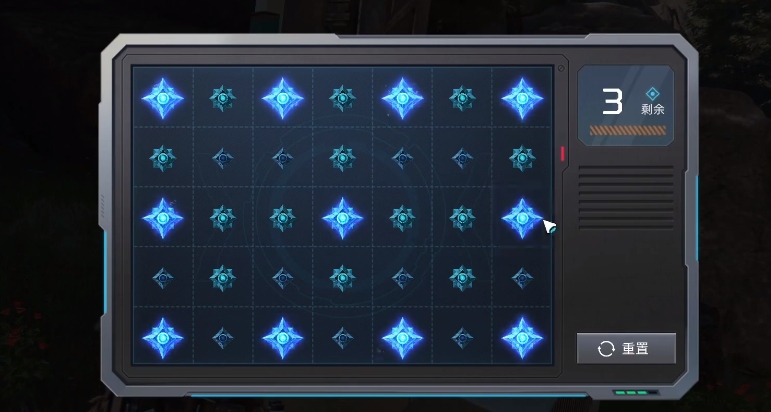 其实在上面大家要是遇到磁能锁这个机关的话,在上面就可以看到类似游戏机的画面,在上面周围一拳以及中间的一排会有规律间隔的方式排列几个蓝色的炸弹,在游戏中大家只要在有限的次数之内将上面的方格全部引爆,大家才可以顺利的解锁开。