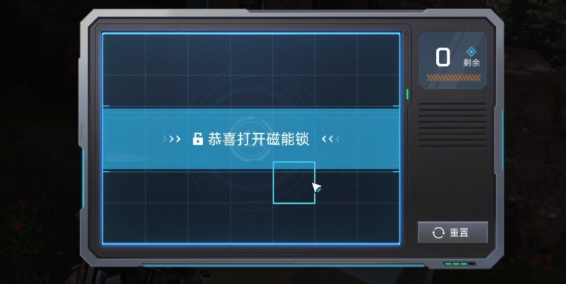 最后一步大家就可以选择上面或者是下面的格子,这样基本是可以将格子给引爆完全的,在顺利的引爆之后就可以解锁这个磁能锁啦,其实大部分的磁能锁都是可以用这个方式来进行解锁的,如果大家想要解锁其他的磁能锁,也可以优先试用这个顺序哦。