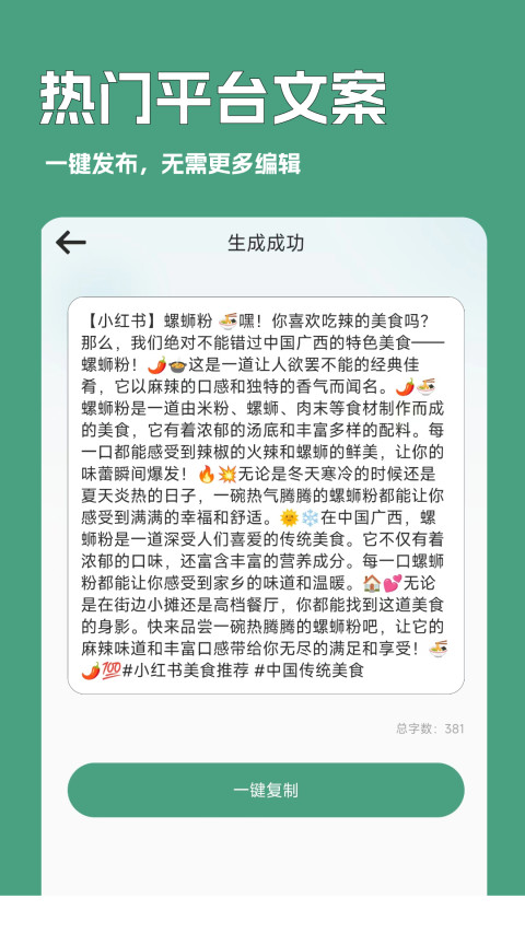 一键文章生成器这款软件是一款有超多文字基础的App,具有强大的写作创作的内容库,所以借助这个软件我们能够快速地生成好多与我们想要创作的内容相匹配的素材内容,可以供我们参考,能够让我们在创作的过程中,更好地记录运用下来,能够有效地组合出比较押韵的歌词内容,这样就大大降低了我们在日常创作过程中的难度,能够让我们参考更多的内容,获得更加专业的建议。