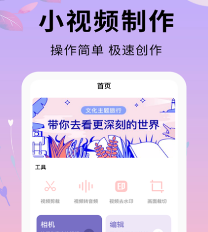 在这一个可制作视频编辑视频的软件里,有很多的视频图片剪辑工具,还能够进行特效处理。在剪辑的时候能够精准到0.1秒,想剪哪里就剪哪里,更容易成为视频剪辑大师。