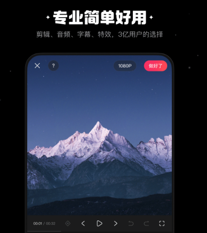 这个软件不仅可以对视频进行剪辑,也可对音乐进行剪辑,支持多段视频剪裁拼接以及添加字幕和特色贴纸,帮助用户制作出爆款的视频背景以及热门视频同款。