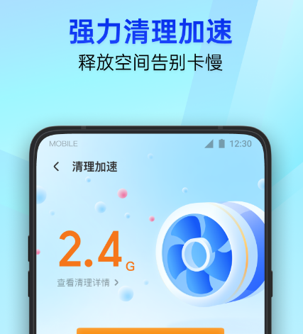 当手机里面有病毒的时候,可利用软件来进行清理,在有垃圾以后也可利用软件来清理,还具备微信专清、短视频清理、一键加速等功能,让手机运行速度更快捷。