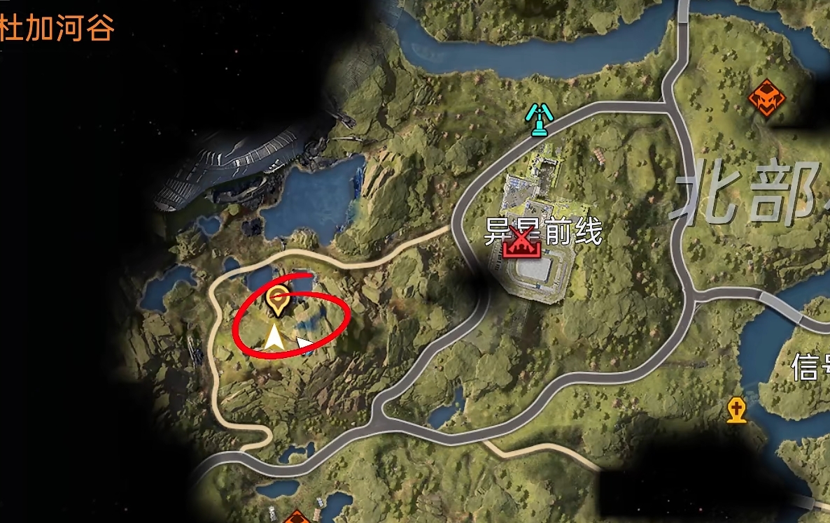 第三个黑球的位置是在异星前线左下方的山上,上图已经将它的位置给标出来,大家可以先到(292,1497)这个坐标所在的位置,然后慢慢去找它。
