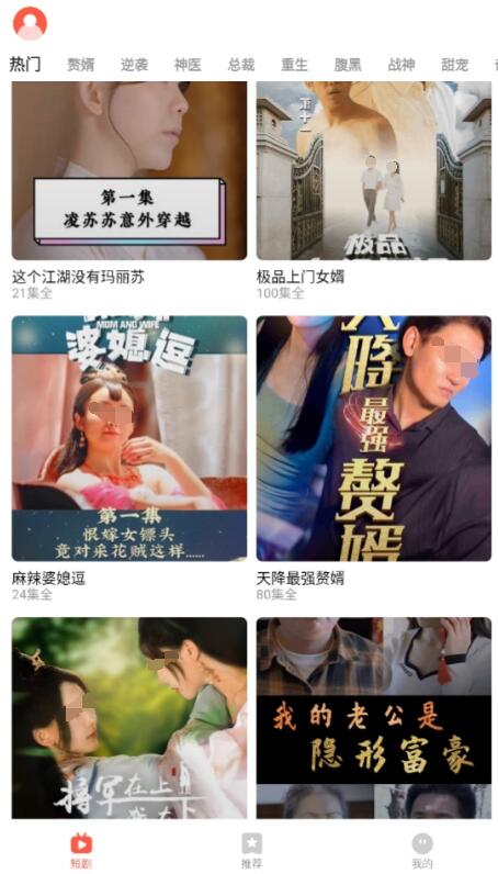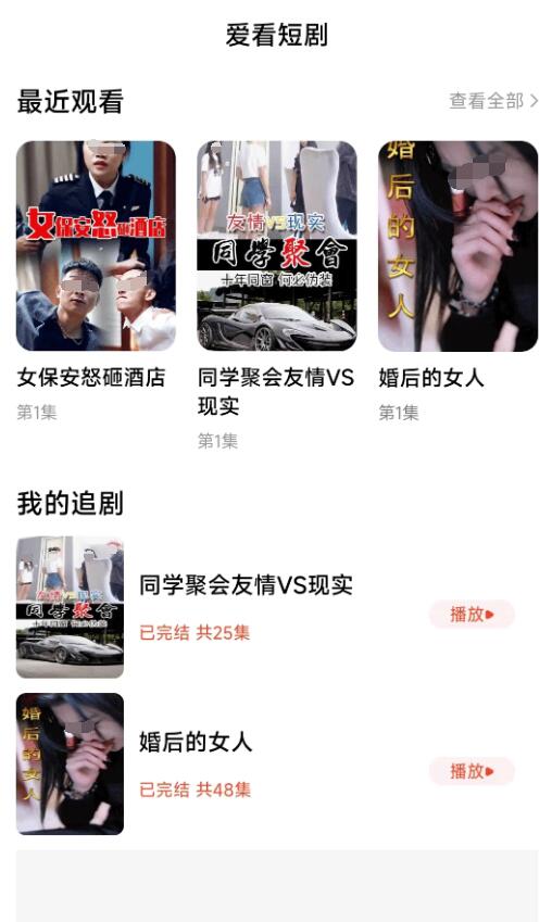 在应用的首页,显示着各种类型短剧,平台还设置了一个推荐区域,每天和你分享有趣的新内容,每次看不完的剧集,你还可以将其收藏起来,以后有时间再看。