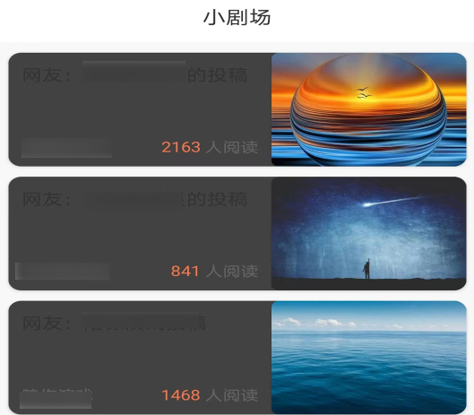 这里主要还是用户自己上传的一些优质短剧作品,在小剧场板块中大家就可以快速获取海量的优质内容。软件中资源的清晰度还是非常不错的,还能够直接看到播放阅读次数信息来判断热度如何。